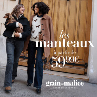 *Jours Malice : Offre valable jusqu’au 5 mai 2025en magasin. Profitez d’une avant-première exclusive le mardi 22/04/2025 dès 16h30 sur graindemalice.fr. Bijoux : -30% sur tous les bijoux (hors acier, montres, argent garanti, lunettes et magasins outlets) du 23/04/2025 au 05/05/2025. Offre valable sur les articles signalés, non cumulable avec d’autres offres en cours.